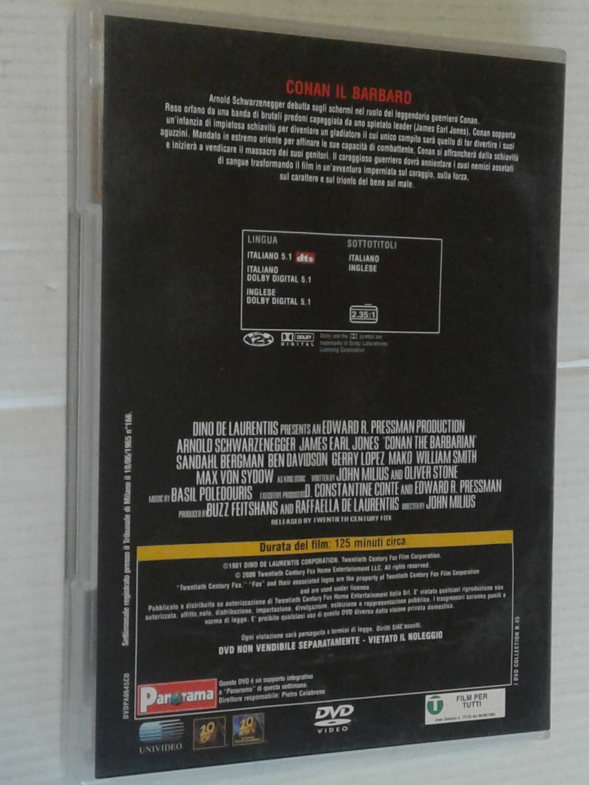 DVD FILM- DA COLLEZIONE- (m15)- MITI E LEGGENDE- CONAN- IL BARBARO- CON:ARNOLD SCHWARZENEGGER- in ottime condizioni