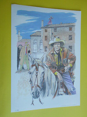 rara litografia numerata e firmata tex willer e martin mystere con timbro primo giorno e francobollo filatelia-