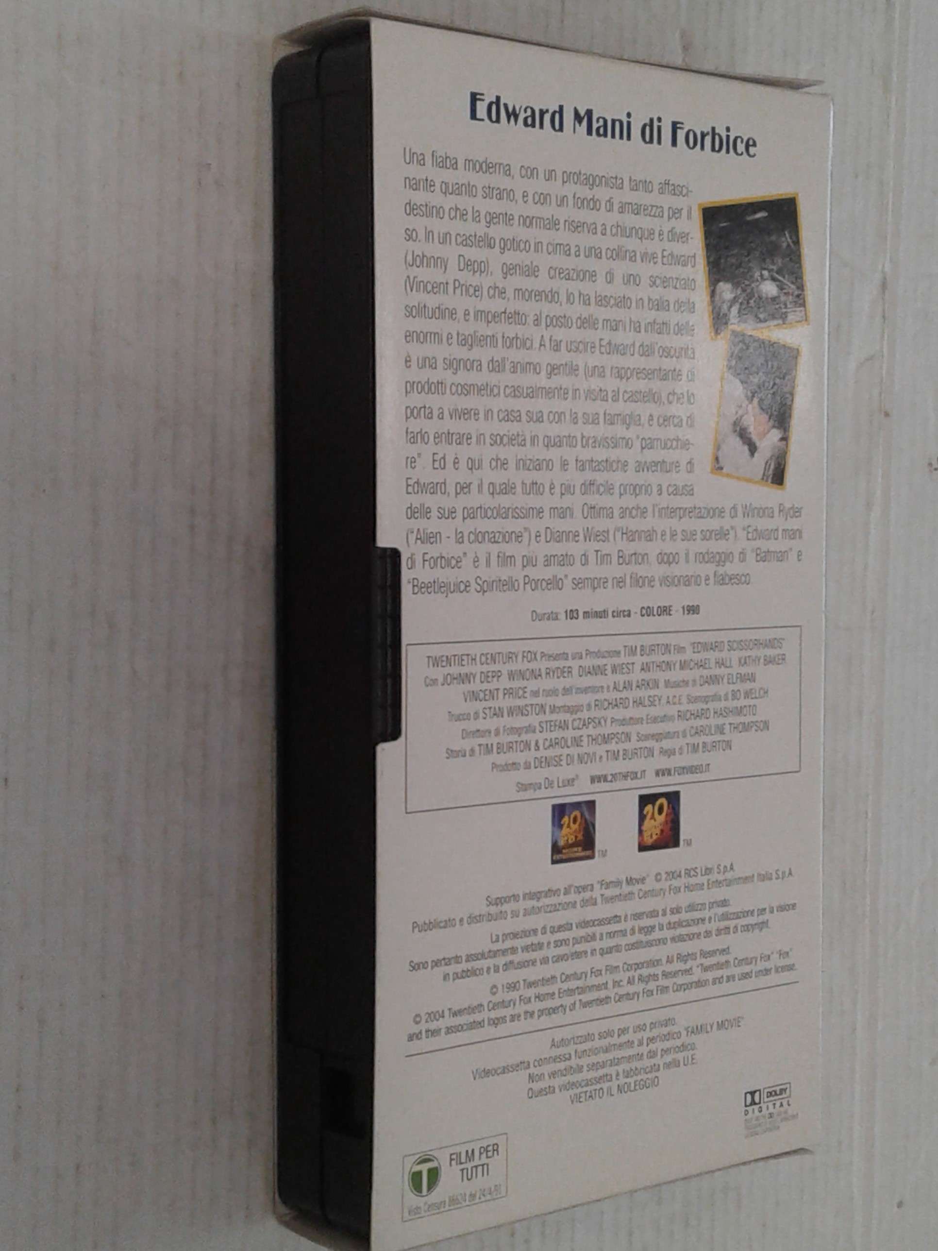 VHS FILM-videocassetta- (F01)(sc.17)-FAMILY MOVIE-edward mani di forbice- CON: JOHNNY DEPP- FABBRI EDITORI
